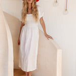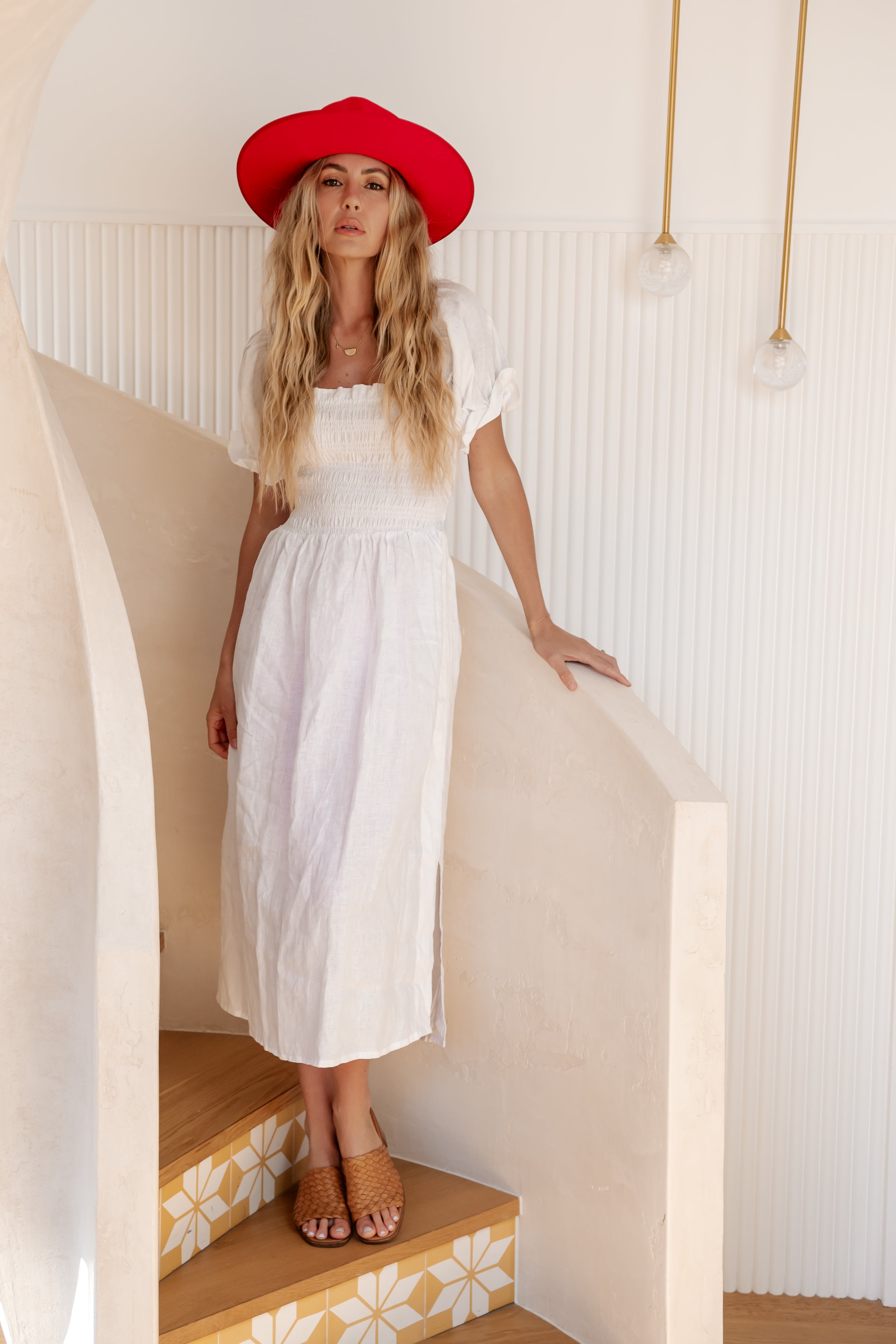 The Shirred Midi Dress made with the softest 100% Linen is a breath of fresh air.